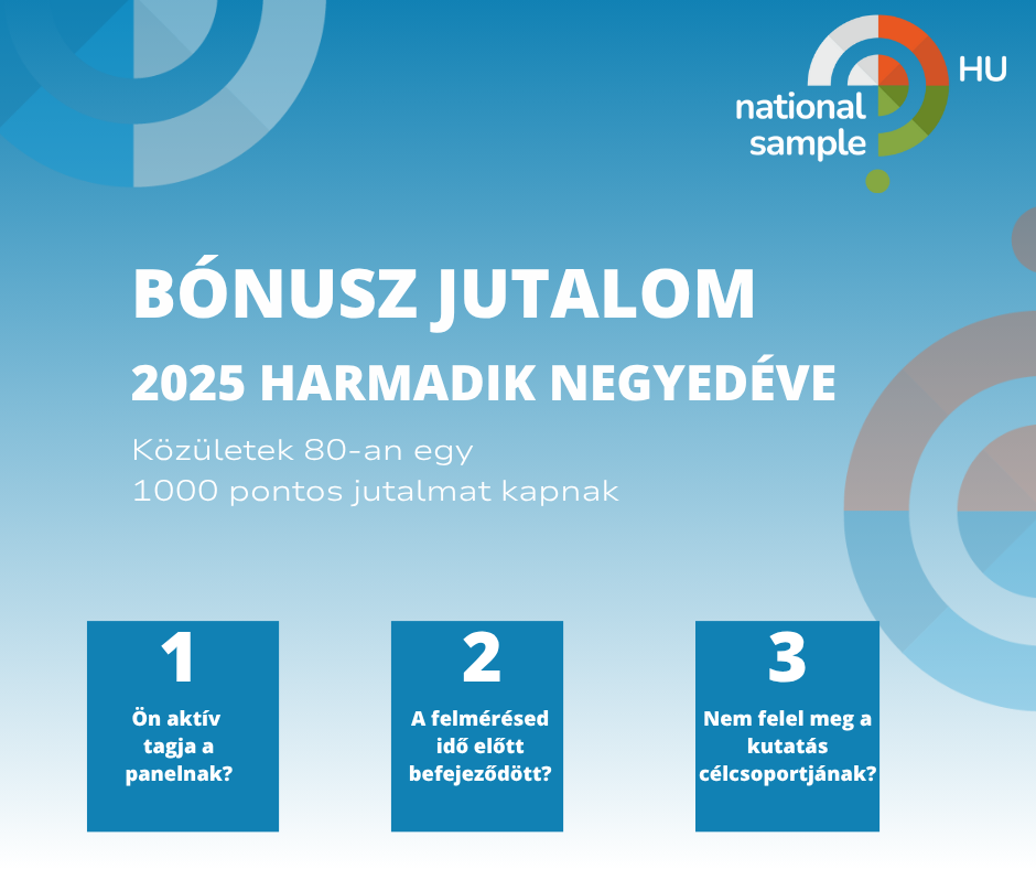 2023. szeptemberétől kezdve rendszeresen, háromhavonta kiválasztunk 80 National Sample HU tagot, akik különleges bónuszt kapnak aktivitásuk jutalmaként. Ezúttal a 2025-ös év harmadik negyedévének sorsolási eredményeit hozzuk el.